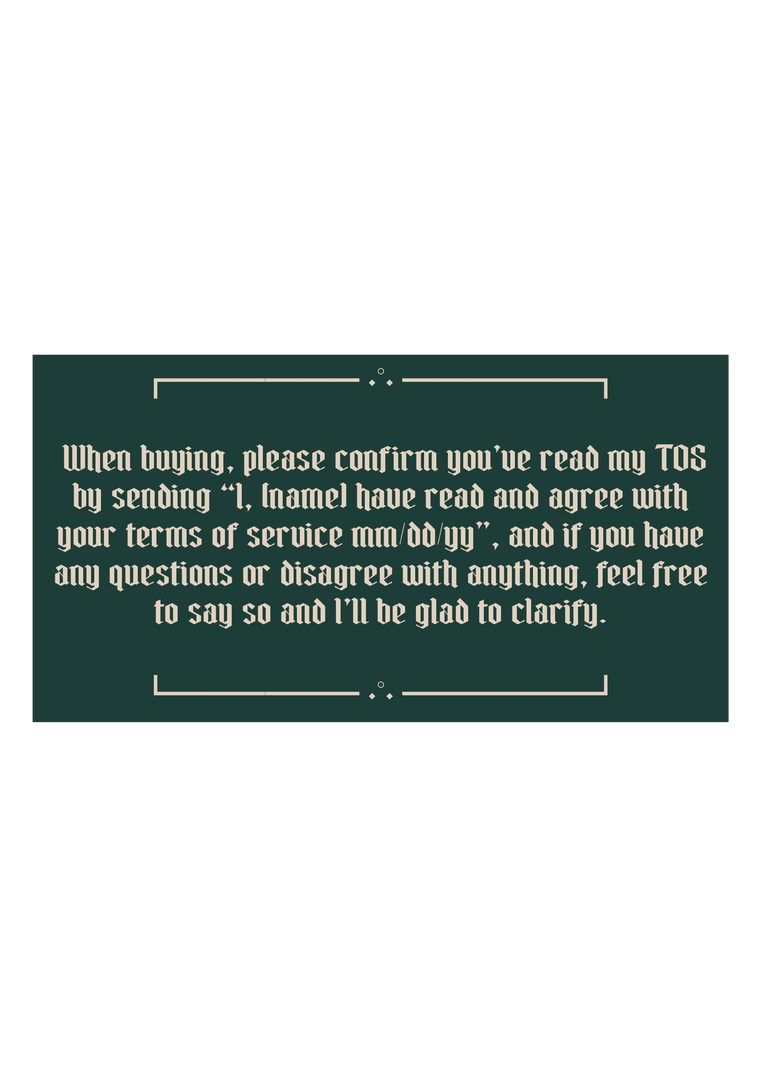 Q. Do you accept Cashapp/Venmo/Zelle/Gift cards/etc?A. Unfortunately, due to my location, I can only accept payment through PayPal.• ─── • ─── •Q. Can I pay after the sketch?A. No, I only start the project after I've received the payment.• ─── • ─── •Q. Can I split the payment?A. Yes, you can. I offer an option to split the payment between 50% (+$15 fee) before I start the project and 50% when I'm done. I will not email the finished product until I've received the full payment, in the meanwhile, I'll only send watermarked JPEG previews for approval.• ─── • ─── •Q. How long will the commission take?A. My turnaround time is usually within 10 business days when my work list is small, though depending on the complexity of the artwork, timezone, client communication, current amount of work, illness, etc, it can take up to a month. If you want a better estimate for your commission TaT, feel free to ask me.• ─── • ─── •Q. Can I ask for updates?A. Yes, you can, though since I already send work-in-progress shots of every stage of the commission for approval, I ask that you only ask for updates if it's been over 5 business days since the last update I've sent, and please do not message me about wips during weekends or holidays, even if I’m online or responding messages, these are my days off.• ─── • ─── •Q. Where do I receive the final product?A. I always send the high resolution image file through email, though if you have a toyhou.se account I can also upload it directly to the character's profile.• ─── • ─── •Q. How much is the commercial usage fee?A. It can vary from +25% to +200%, it all depends on what the artwork will be used for and your size as a creator/brand/company, thus it'll always have to be discussed directly with the client.• ─── • ─── •Q. I found this artwork on Instagram/Pinterest/etc, can you replicate it?A. No, while I can use other artworks as inspiration and reference, I do not work with plagiarism, the only pieces I'm willing to recreate are worldwide known classic paintings in the public domain.• ─── • ─── •Q. Can you draw me/my partner/friend/etc?A. No, I do not draw real life people since it's out of my comfort zone, though I am okay drawing personas, avatars or referencing real life pictures.• ────── •°• ────── •If you have any remaining questions, please feel free to DM me about them and I’ll be happy to answer!